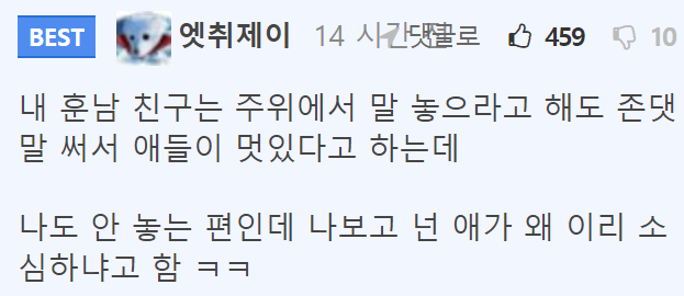 댓글 반응 너무 안 좋음 추천글 Best 5 시청률 폭발한다는 변호사 우영우의 비하인드 댓글 반응도 엄청 폭발적인듯.. 요새 다들 우영우 얘기만 함 추천글 Best 5 엄마가 가장 좋아했던 아빠 리즈 시