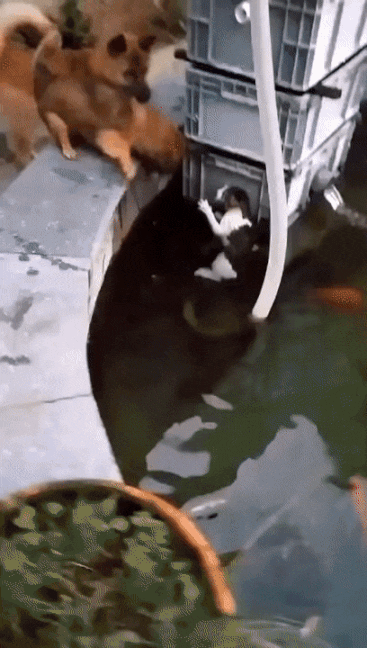 물에 빠진 고양이를 구해주는 강쥐ㅠㅠ